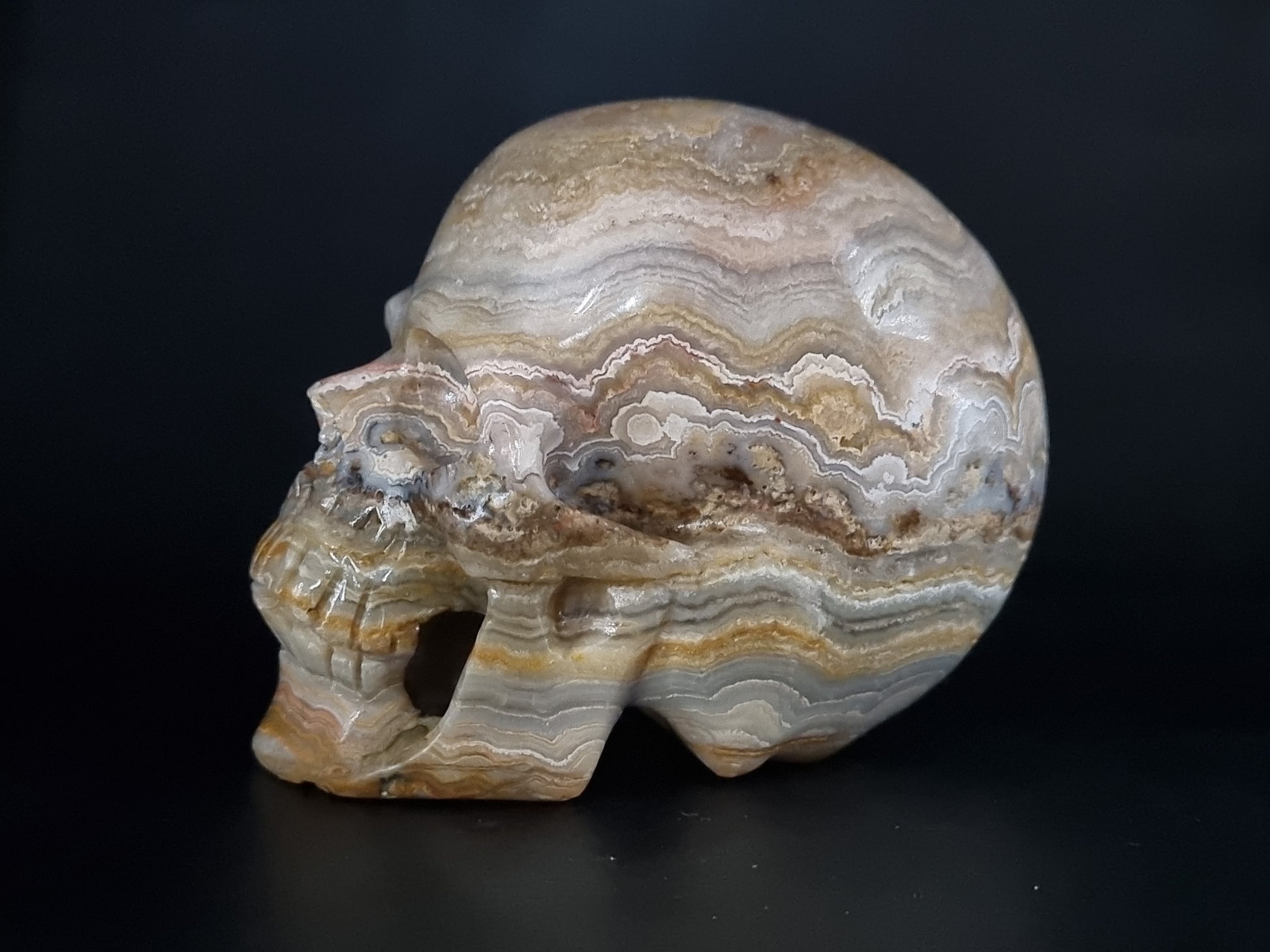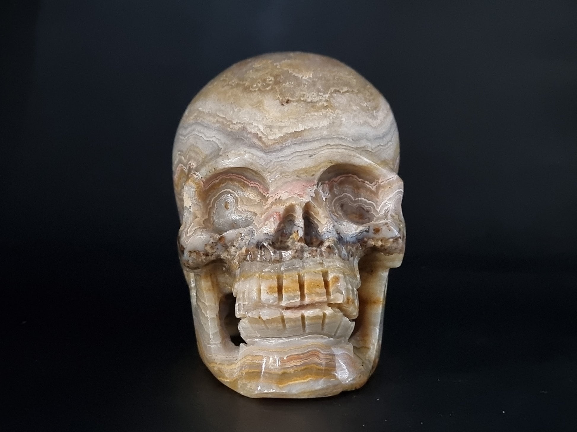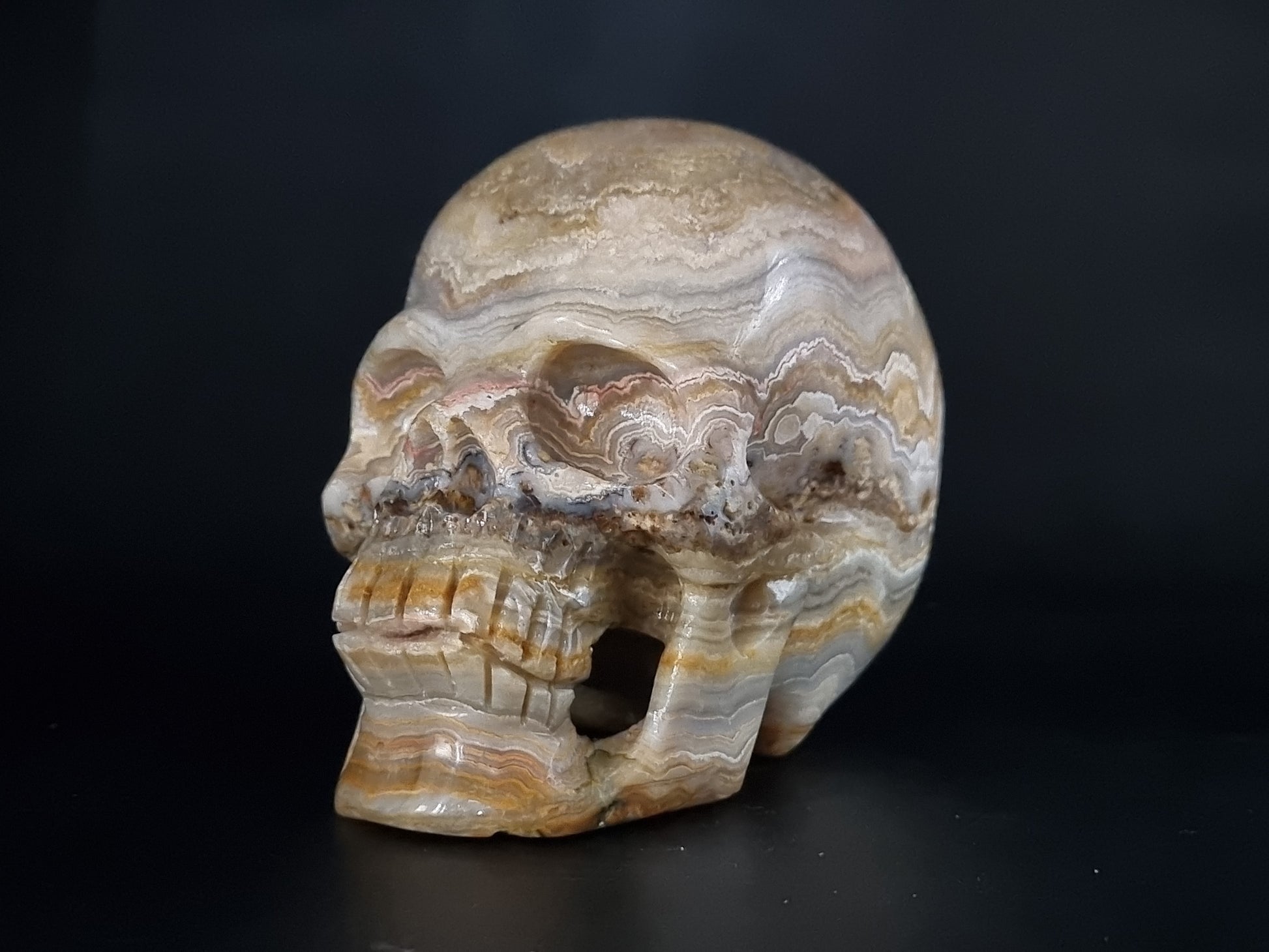 Exceptional work by skillfull craftsman from Sukabumi West Java results a fantastic carved skull from Crazy Lace Agate