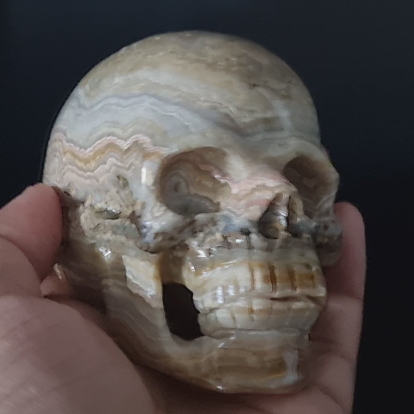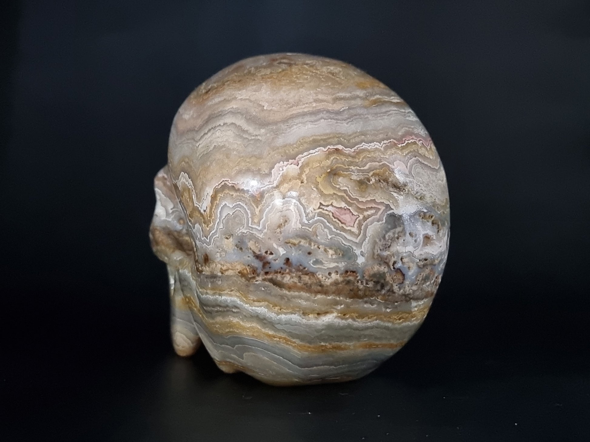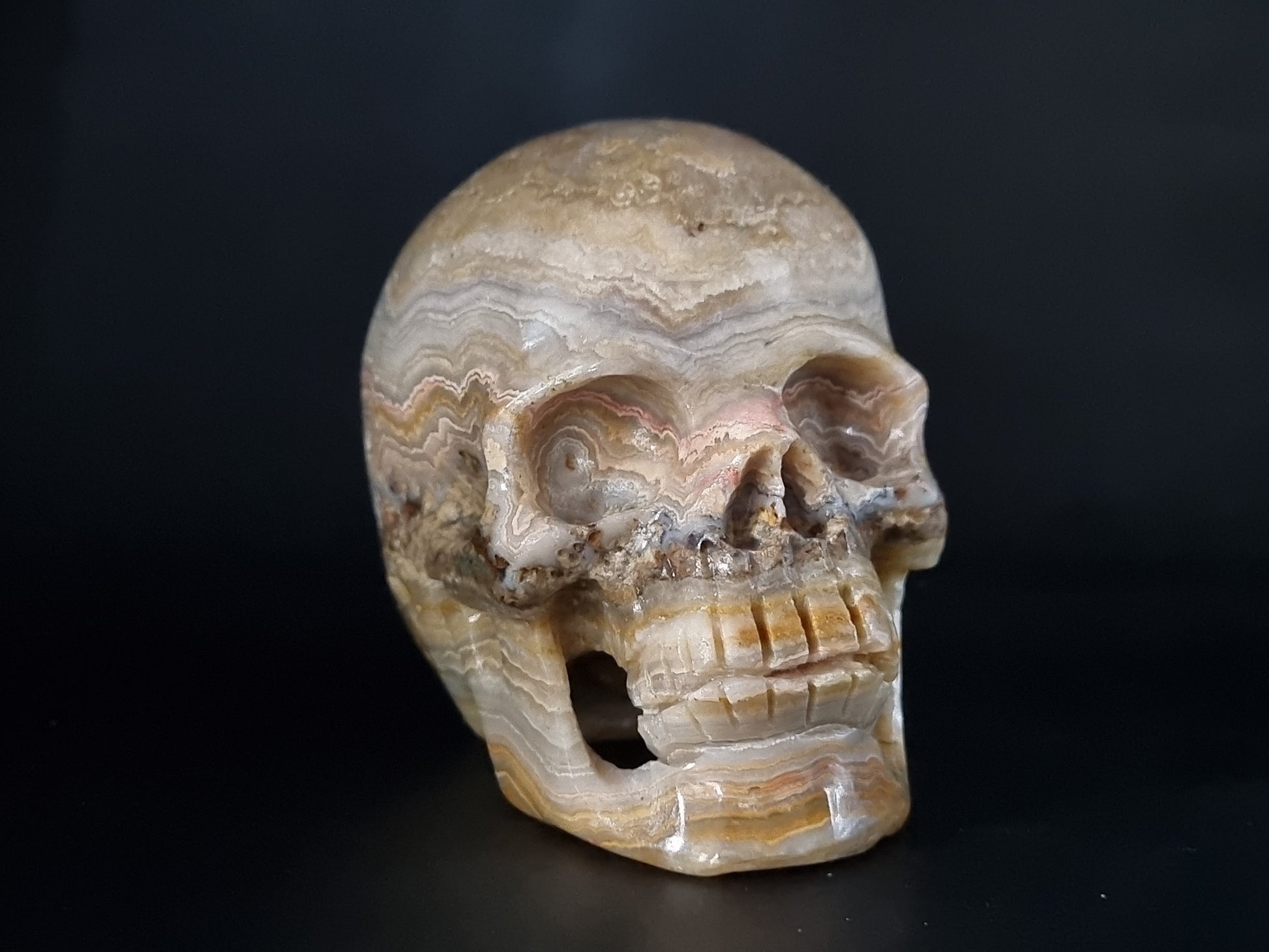 Exceptional work by skillfull craftsman from Sukabumi West Java results a fantastic carved skull from Crazy Lace Agate