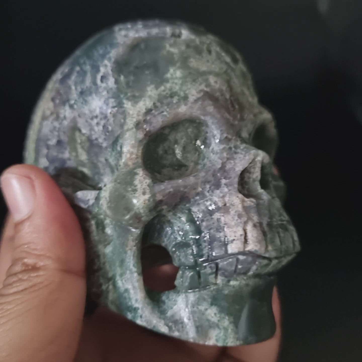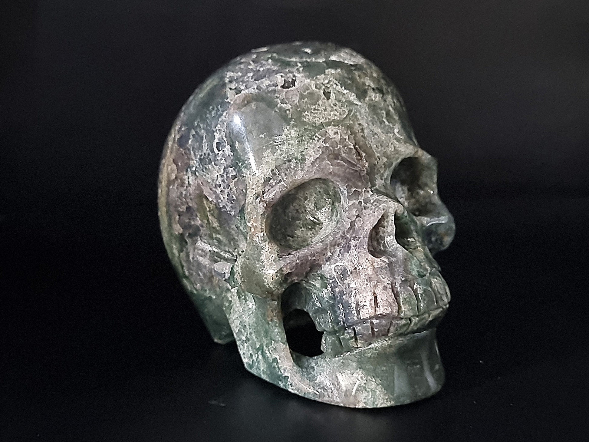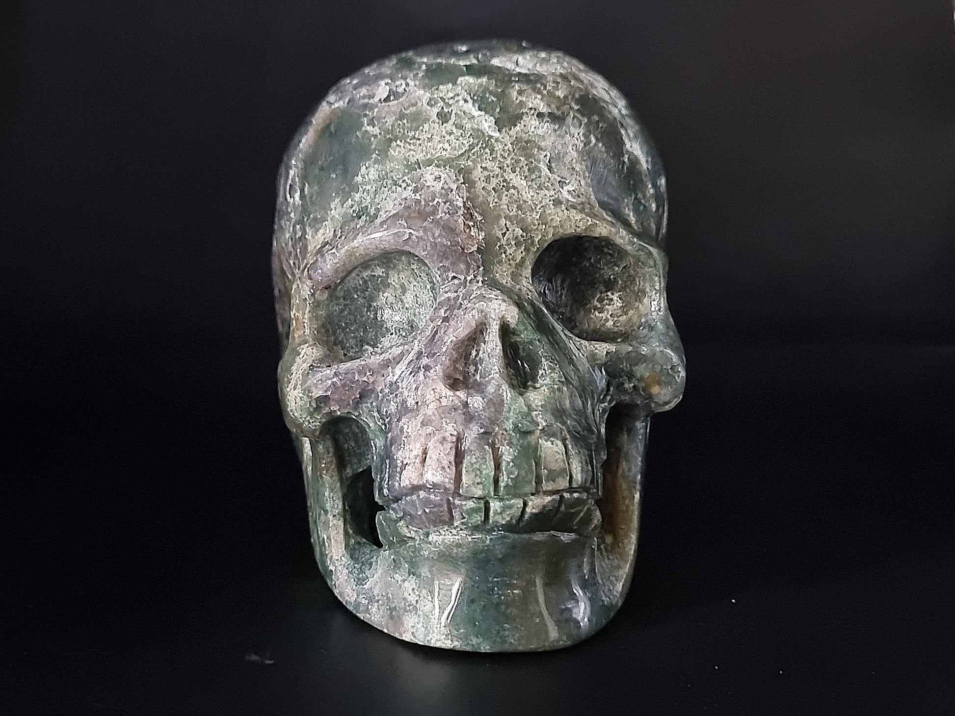 Handmade Grape agate skull made from Bicolor Grape Agate material.