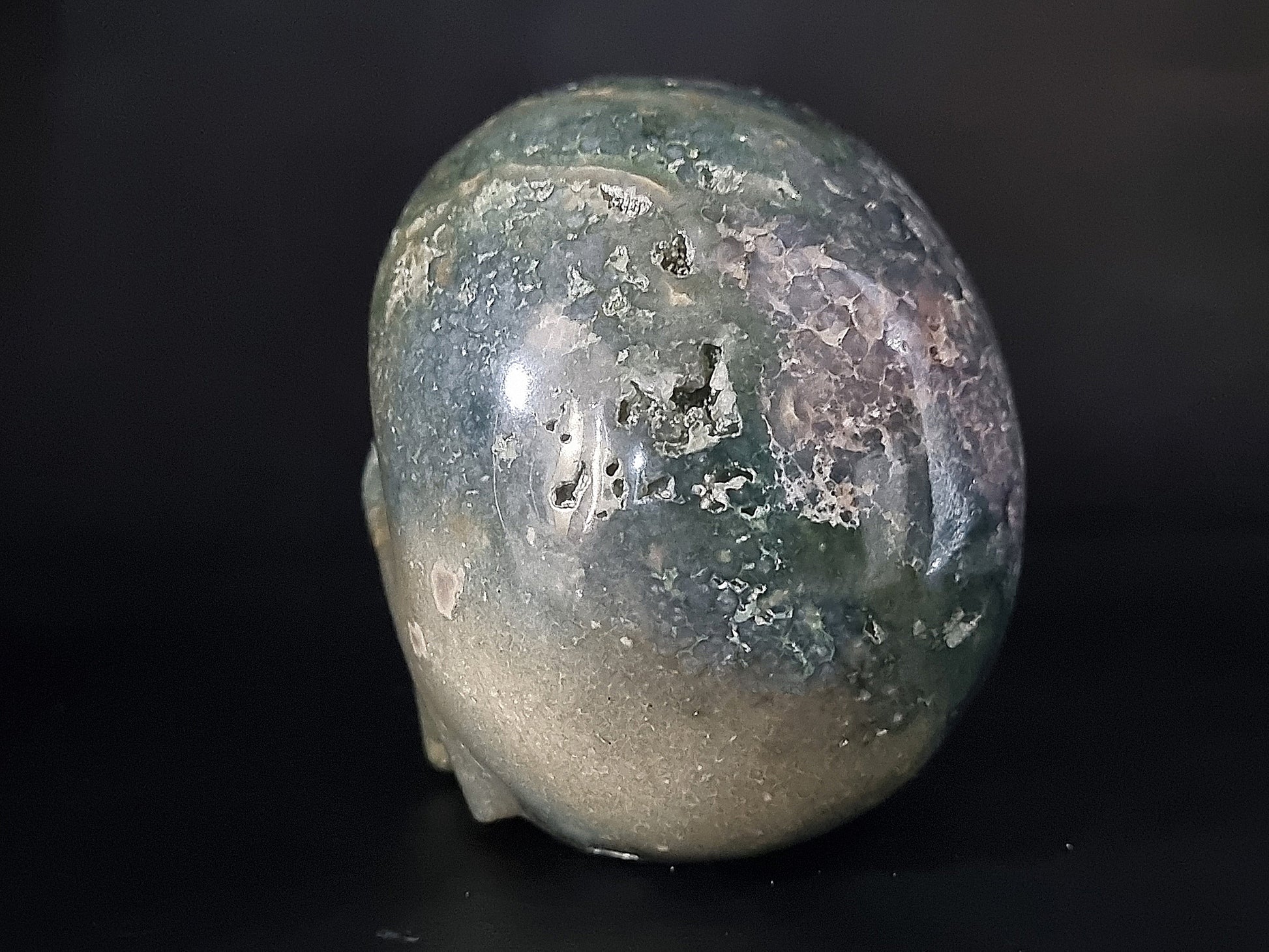 This grape agate skull is made by skillfull craftsman from Sukabumi West Java Indonesia. We select and sort out carefully the big and solid material and then start cutting out it and then form it into skull. The last process is polishing it.
