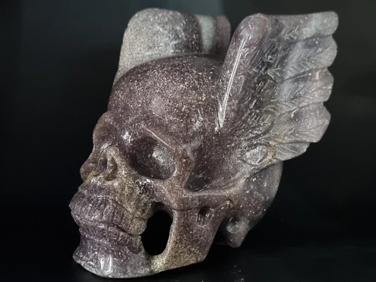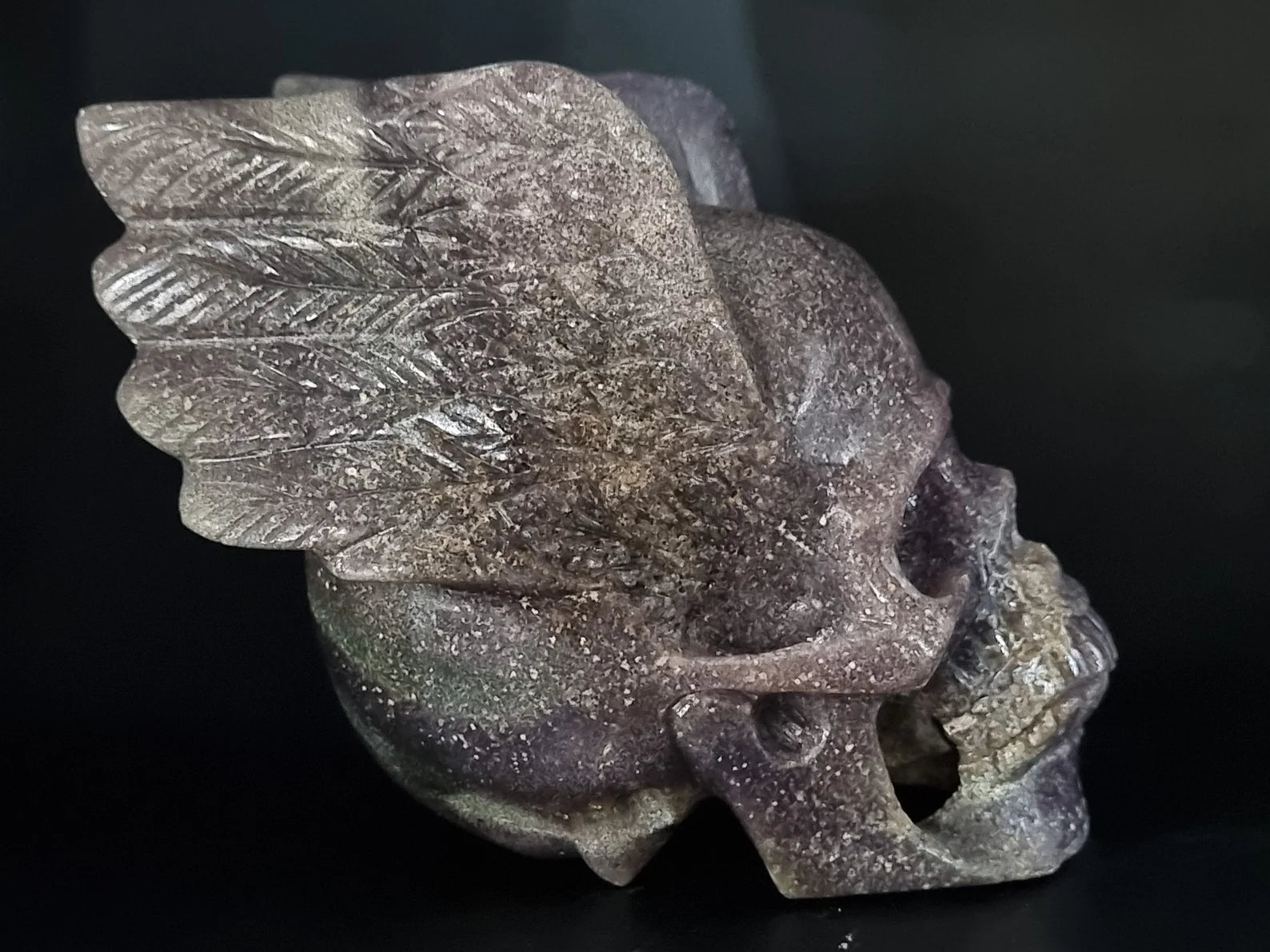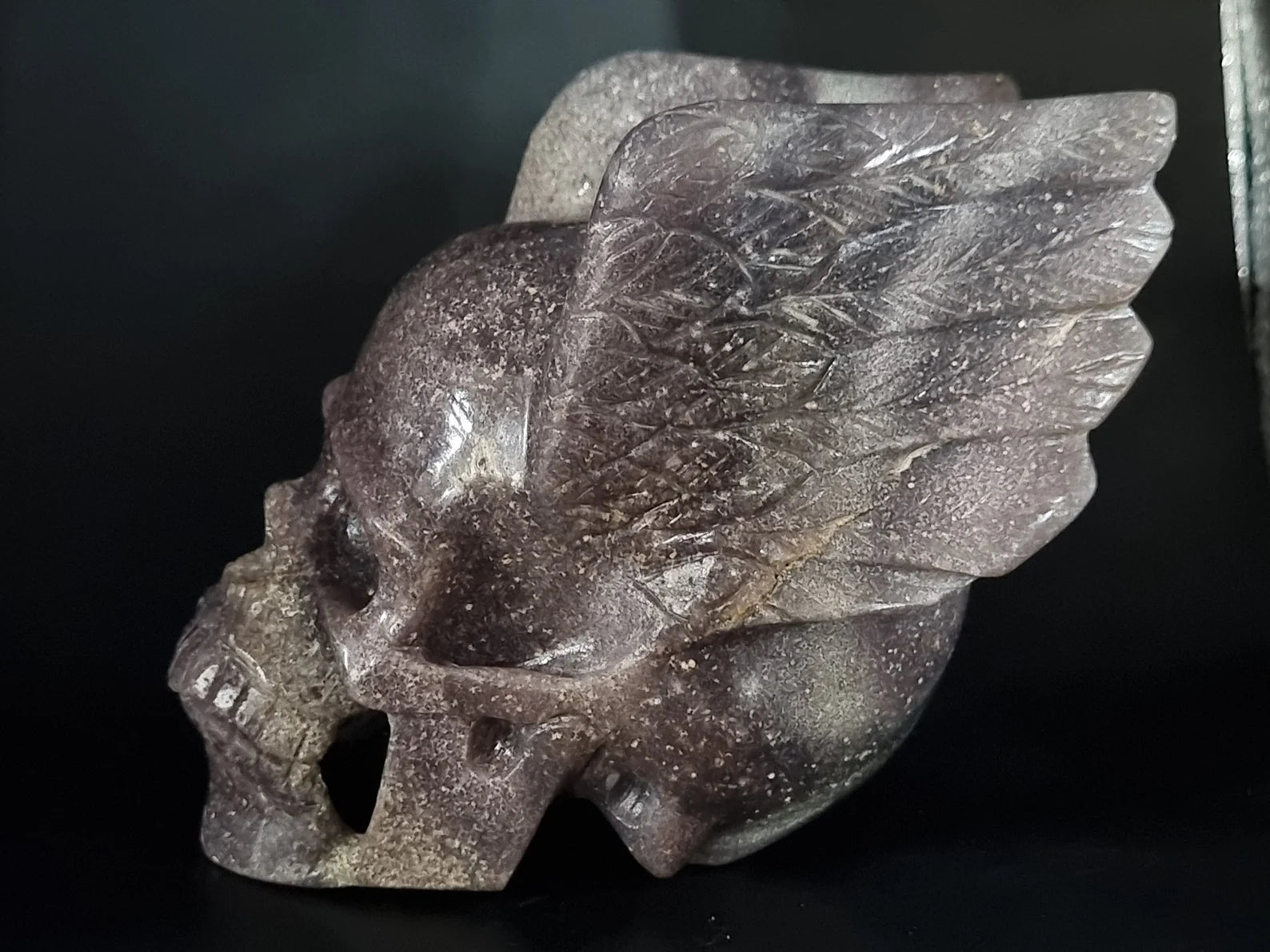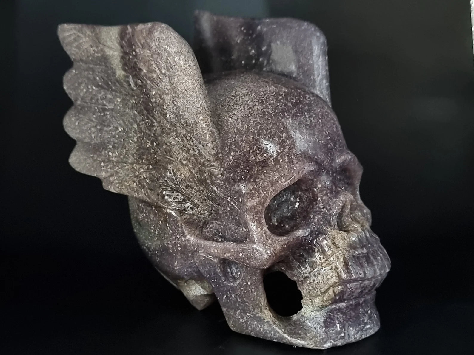 Super Cool Grape Agate Art Skull with Wing - Awesome Grape Agate Skull